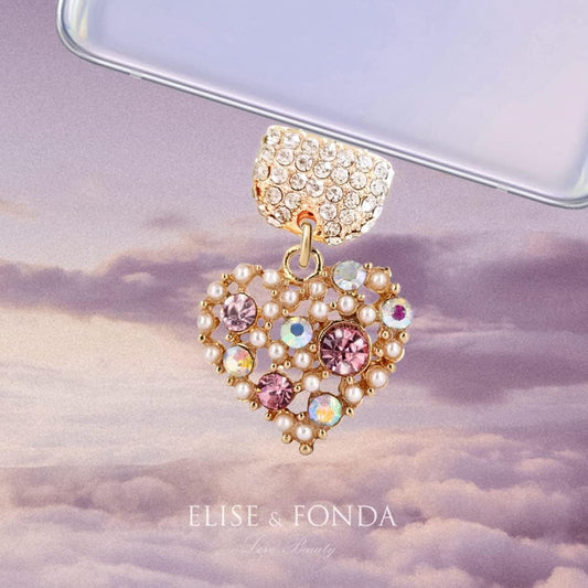 ELISE & FONDA TP199 Type-C USB Charging Port Crystal anti Dust Plug Little Love Heart Pendant Cell Phone Charm for Samsung Galaxy/Huawei/Oneplus/Xiaomi/Oppo Android Phones (Pink)