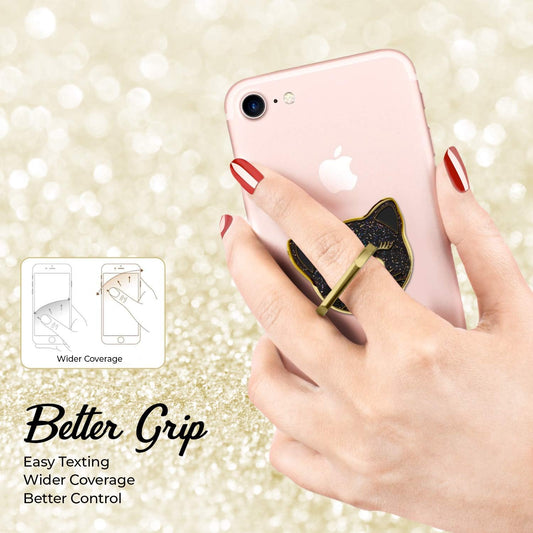Cellphone Ring Holder Finger Kickstand (2 Pack) - Ifab 360° Rotation/Sturdy/Reusable/Grip/Stand/ Universal - Compatible with All Smartphones - Cat Black