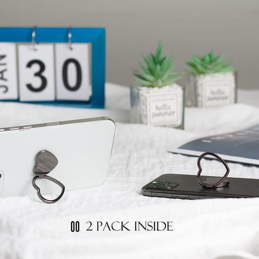 [2 Packs] Love Heart Shaped Glossy Finish Cell Phone Ring Holder Stand, 360 Degree Rotation Finger Ring Kickstand with Polished Metal Phone Grip for Magnetic Car Mount (Black)