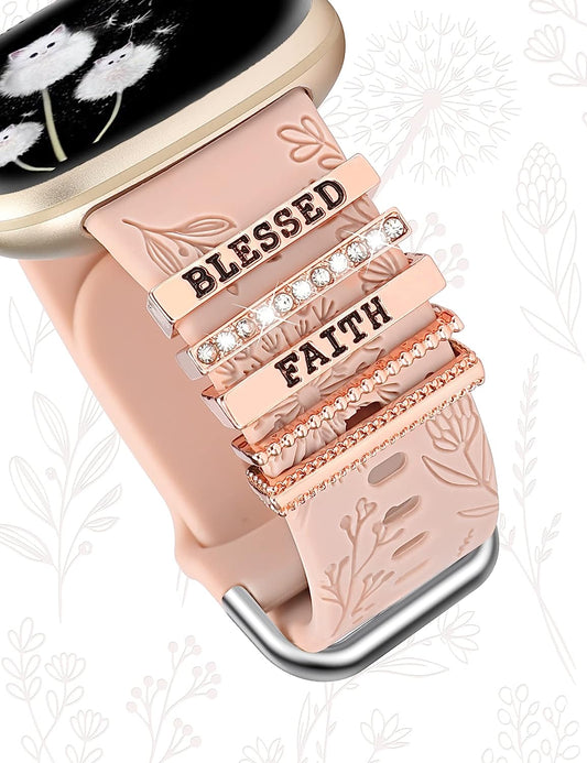 Minyee Decorative Ring Loop Compatible with Fitbit Versa 4/Versa 3/Sense 2/Sense Band Women, Cute Soft Silicone Dandelion Flower Pattern Sport Designer Fancy Summer Strap for Versa 4 (With Band)