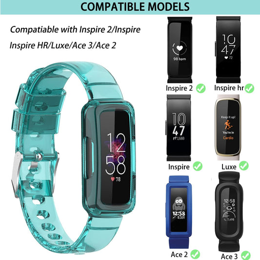 BNBIDEN 2 Pack Watch Bands Compatible with Fitbit Inspire/Inspire 2/Inspire Hr/Luxe/Ace 2/Ace 3 for Women Men, Clear Shockproof Rugged Replacement Wristband Strap with Protective Bumper Case