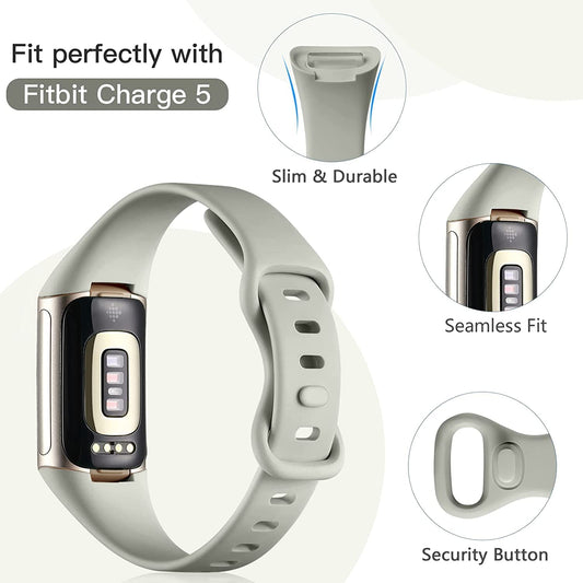 3 Pack Bands for Fitbit Charge 5,Soft Silicone Adjustable Sport Band Replacement Wristbands for Fitbit Charge 5 Fitness Tracker