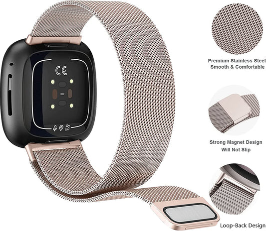 Band for Fitbit Versa 4 & Versa 3 Bands/Fitbit Sense 2 & Sense Bands Women Men,3 Pack Magnetic Stainless Steel Metal Mesh Replacement Strap for Fitbit Sense/Sense 2/Versa 3/Versa 4 Milanese Wristband