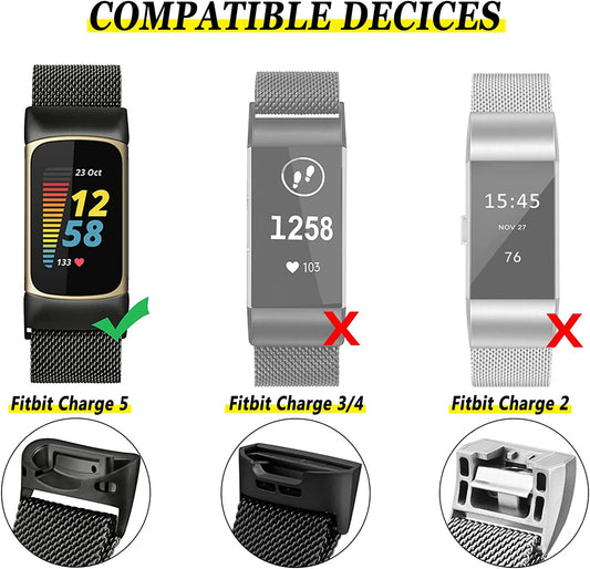 Metal Mesh Loop Bands for Fitbit Charge 5 Band for Women Men, Adjustable Stainless Steel Wristbands Replacement Straps for Charge 5 Activity Tracker