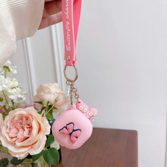 BSFHQS Compatible with Galaxy Buds Live Case(2020) / Galaxy Buds 2 Case(2021) / Galaxy Buds Pro Case Cover(2021),3D Butterfly Cute Cover with Daisy Flower Keychain for Girl,Women - Pink