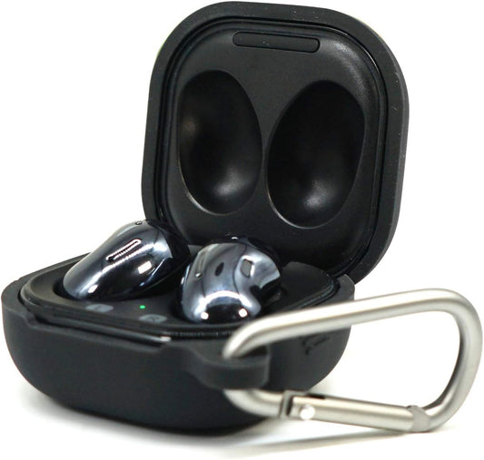 ZALUJMUS Silicone Case for Samsung Galaxy Buds Live, Anti-Break Anti-Lost & Shockproof Easy Carrying Protective Case Cover with Carabiner (Black)