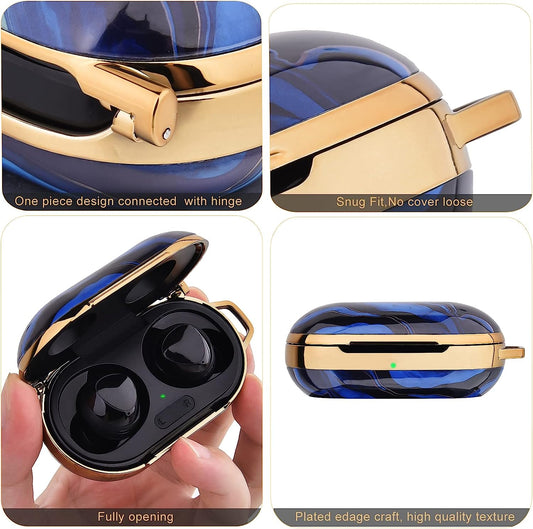 OLEBAND Galaxy Buds and Buds plus Case with Keychain and Cute Pattern,Hard Protective and Anti-Slip Cover for Samsung Buds+ Charging Case,Earbuds Charging LED Visible,Blue Wave