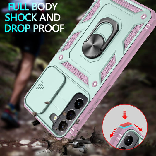 For Samung Galaxy S22 plus Case S22+ plus Case with Slide Camera Cover Ring Kickstand Military Grade Shockproof Case Armor Heavy Duty for Galaxy S22 plus Phone Case (Black)