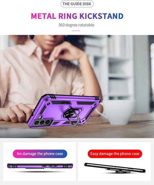 For Samsung S22 plus Case, Galaxy S22+ Case with HD Screen Protectors, Military-Grade Metal Ring Holder Kickstand 15Ft Drop Tested Shockproof Cover Case for Samsung Galaxy S22+ 5G Purple