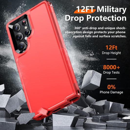 Temdan [Heavy Shockproof for Samsung Galaxy S22 Ultra Case,With 2 Pack [Soft Screen Protector + Camera Lens Protector] [Military Grade Drop Protection] Tough Rugged Full-Body Protection Phone Case Red