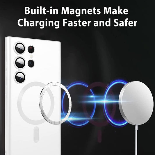 Goarshy Magnetic Designed for Samsung Galaxy S22 Ultra Case White [Compatible with Magsafe] Hard Back & Soft Bumper, Protective Slim Thin S22 Ultra Case 6.8'' 2022, Feather Dream White