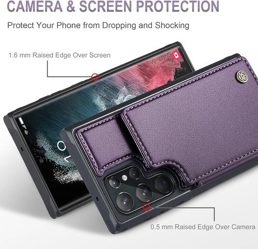Vinich Samsung Galaxy S22 Ultra Case with Card Holder, Samsung S22 Ultra Wallet Case for Women Men with RFID Blocking, Durable Kickstand Shockproof Phone Case for Galaxy S22 Ultra 5G, Purple