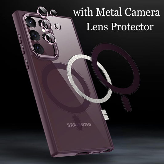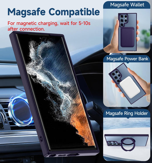MAGIC JOHN Magnetic Case for Samsung Galaxy S22 Ultra Case [Compatible with Magsafe] [With Rotatable Magnetic Metal Stand][Military Grade Shockproof][Anti Yellowing] Matte Back Soft Edge,Purple