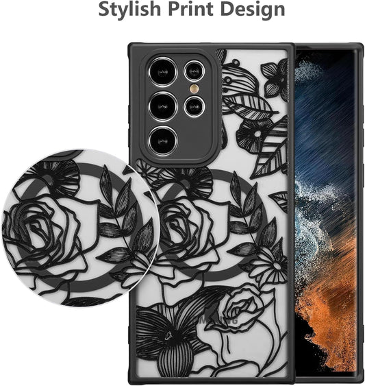 XIZYO Magnetic Case for Samsung Galaxy S22 Ultra Case Floral Rose Cute Phone Case [Compatible with Magsafe] for Women Girls Aesthetic Pattern Slim TPU Shockproof Bumper Case, Black