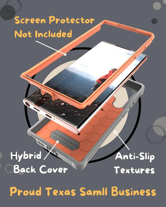 Caseborne V Designed for Galaxy S22 Ultra 5G Case (2022), Full-Body Multi-Layer Rugged Kickstand Case Screenless - Orange