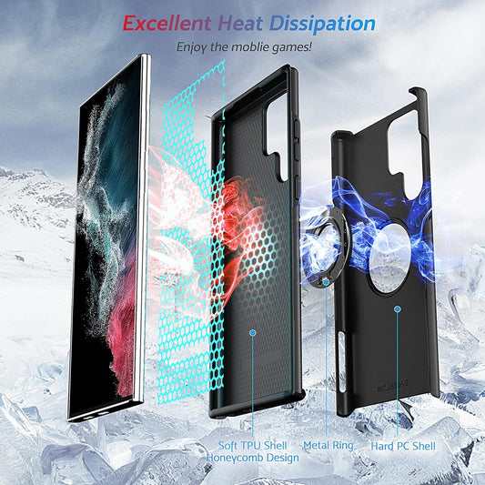 Anqrp Hidden Series Galaxy S22 Ultra Case 5G,[No Fall-Off Kickstand] 360°Metal Ring, 15Ft Military Grade Shockproof Protective Phone Case Designed for Samsung Galaxy S22 Ultra, Black