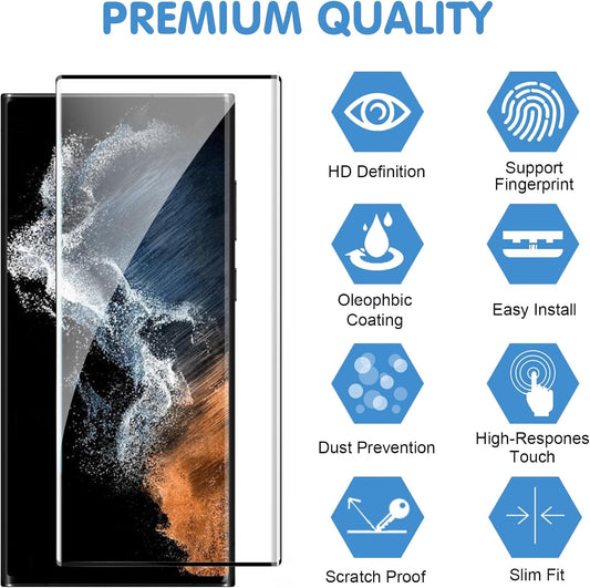2Pack Screen Protector for Samsung Galaxy S23 Ultra/S22 Ultra, Auto-Alignment Kit,3-Second Installation, Bubble-Free & Self-Healing, 3D Curved Full Coverage & Scratch Resistant,Not Glass