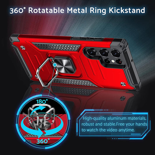 Anqrp Galaxy S22 Ultra Case, Military Grade Protective Phone Case Cover with Rotatable Metal Ring Kickstand [Support Magnet Mount] Compatible with Samsung Galaxy S22 Ultra, Lucky Red