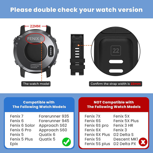 Watch Band Fenix 5 22Mm Width Compatible with Fenix 5/Fenix 5 Plus/Fenix 6/Fenix 6 Pro/Forerunner 935/Forerunner 945/Instinct Tide/Instinct Tactical