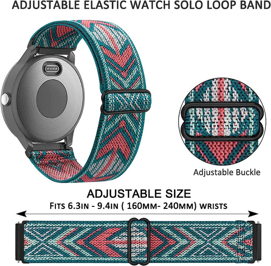 Wanme Bands for Garmin Venu / Vivoactive 3 Watch Band, 20Mm Adjustable Elastic Replacement Wristband Strap for Garmin Venu Sq, Vivoactive 3 Music, Forerunner 645 / 245 Music, Samsung Galaxy Watch 4 (Green Arrow)