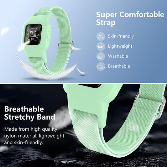 Mosstek Elastic Bands Compatible for Garmin Vivofit Jr 3 Bands for Kids 6+, Soft Stretchy Loop Nylon Bands Compatible for Garminfit Jr. 3 Swim-Friendly Adjustable Replacement Boys Girls, 3 Pack