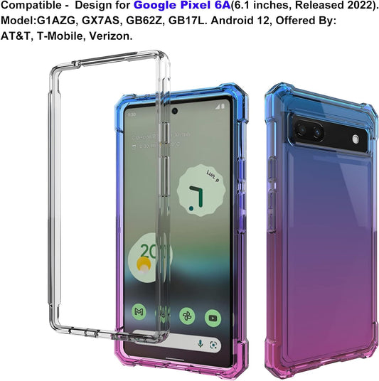 Ailiber Case for Pixel 6A, Google Pixel 6A Phone Case with Screen Protector, 2 Layer Structure Protection, Shockproof Corner TPU Bumper, Heavy Duty Rugged Silicone Phone Cover for Pixel 6A-Blue Pink
