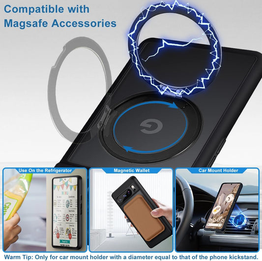 For Google Pixel 8 Pro Magnetic Case Compatible with Magsafe [Invisible Kickstand] Shockproof Anti-Fingerprint Matte Translucent Cover Protective Phone Case for Pixel 8 Pro 5G (Black)