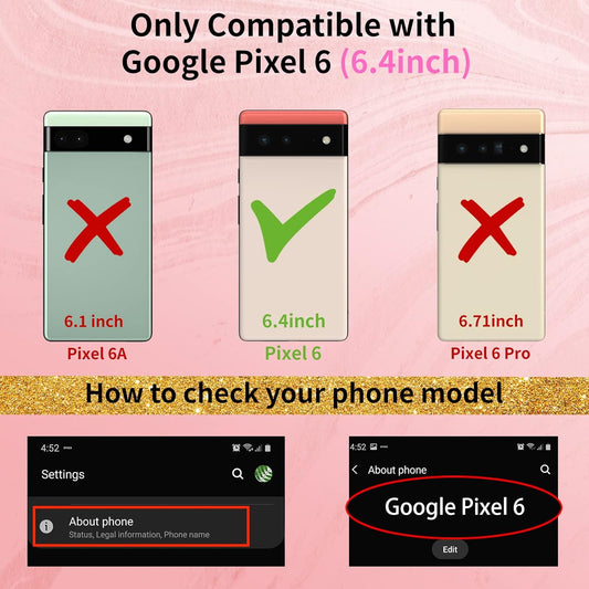 Shorogyt (3In1 Heart Case for Google Pixel 6 Case 5G 6.4 Inch Women Cute Aesthetic Love Hearts Pattern Girls Gold Luxury Girly Design Phone Cases Cover+Screen+Chain for Pixel 6 Case 5G 6.4''