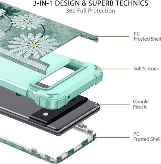 Hekodonk for Google Pixel 6 Pro Case,Heavy Duty Shockproof Protection Hard Plastic+Silicone Rubber Hybrid 3 in 1 Drop Protective Case for Google Pixel 6 Pro White Flower