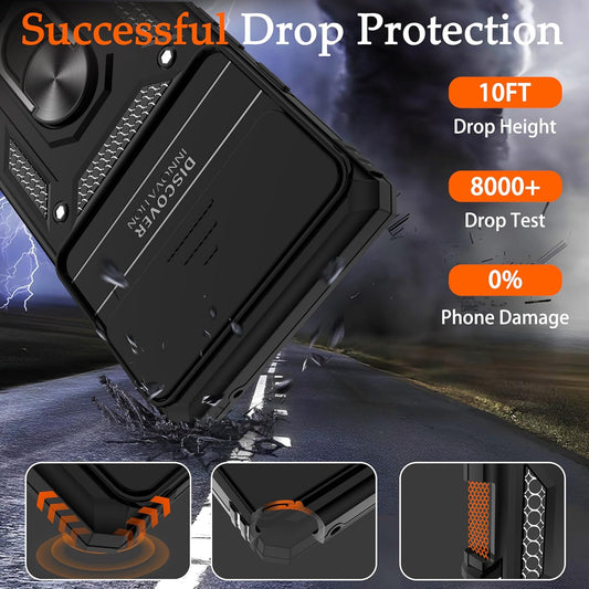Ibaove for Google Pixel 6 Case with Slide Camera Cover+2 HD Screen Protector, [Military Grade] Shockproof Phone Case with Ring Kickstand for Google Pixel 6 Phone, Black