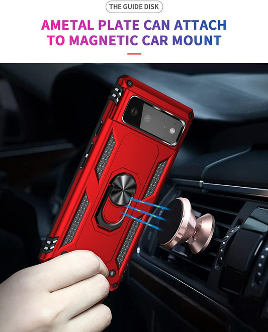 Androgate Designed for Google Pixel 6 Case with HD Screen Protectors, Military-Grade Metal Ring Holder Kickstand 15Ft Drop Tested Shockproof Cover Case for Pixel 6 Red