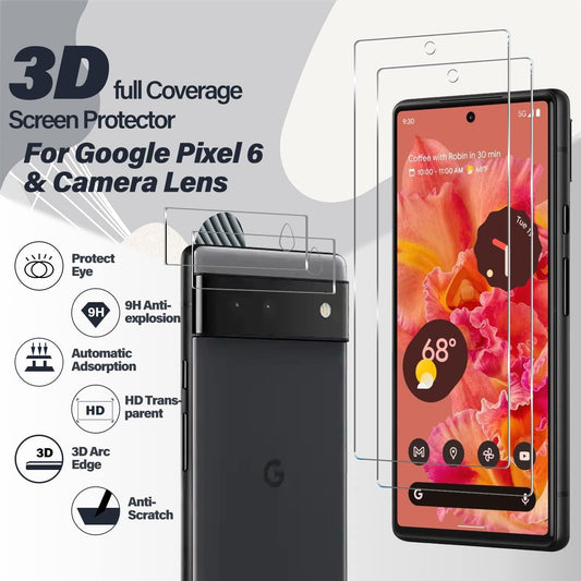 Pixel 6 Tempered Glass Screen Protector + Camera Lens Protector [ 2 + 2 Pack ][Fingerprint Unlock] [Anti-Scratch] [Case Friendly] HD Clear Protective Film for Google Pixel 6