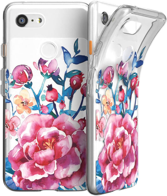 Toik Slim TPU Phone Case for Google Pixel XL 2 XL 3 XL 3A XL 4 XL 2019 Flowers Blossom Girly Pink Flexible Cover Women Gift Artistic Silicone Clear Floral Print Lightweight Design Protective