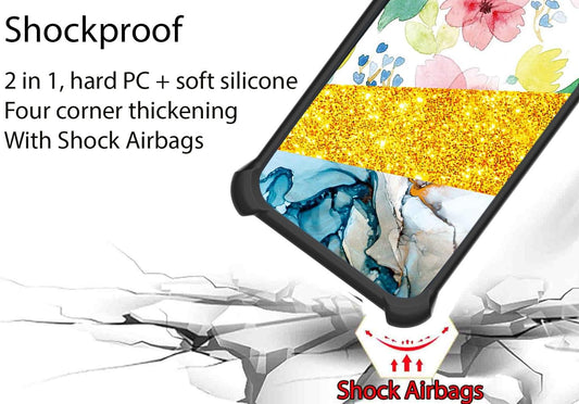 Case for HTC Wildfire E2 Play Case Compatible with HTC Wildfire E2 Play Phone Case Cover [With Tempered Glass Screen Protector][Hard PC + Soft Silicone][Ring Support] [Golden Reflect Light] DJH-XXX