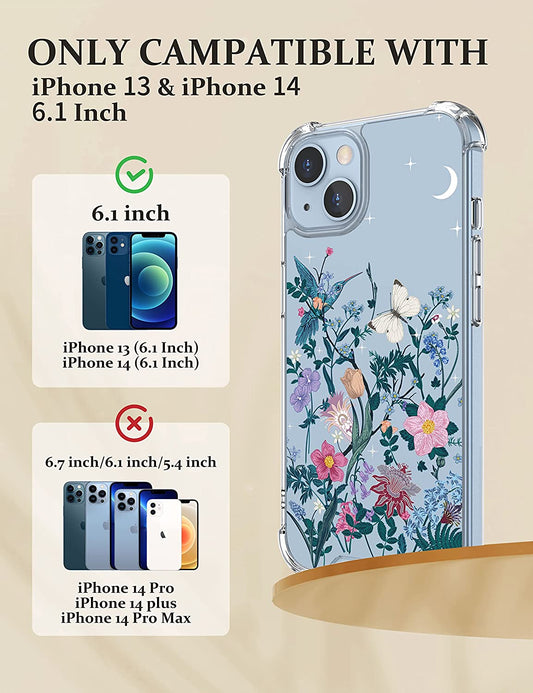 YOYORI Compatible with Iphone 14 Case Clear[With Screen Protector], Transparent Shockproof Protective Soft TPU Bumper Cover 6.1 Inch 2022 (Butterfly)
