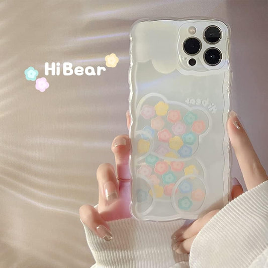 GUSDBSW Cute Iphone 14 plus Case for Women Girls, Fashion Wave Shape Grip Design, Soft TPU Bumper Shockproof Protective Clear Phone Cover - Flower Bear