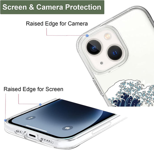 Unov Case Compatible with Iphone 14 plus Case Clear with Design Embossed Pattern Soft TPU Bumper Slim Protective 6.7 Inch (Great Wave)