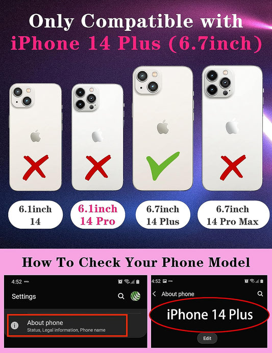 Goocrux (2In1 for Iphone 14 plus Case for Girls Women Kawaii Cartoon Girly Phone Cover Cute Unique Design with Slide Camera Cover+Ring Holder Pink Rainbow Cases for Iphone 14Plus 6.7 Inch