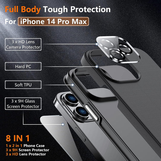 ALOFOX for Iphone 14 Pro Max Case [Military Grade Drop-Proof] [Tempered Glass Screen Protector + Camera Lens Protector] Dual Layer Heavy Duty Shockproof Case-Matte Black