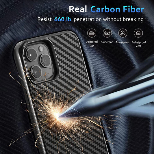 Designed for Iphone 14 Pro Case 6.1 Inch, Military-Grade Drop Protection, Carbon Fiber for Iphone 14 Pro Shockproof Slim Thin Cover, Support Wireless Charging for Men & Women, Gloss Black Protector
