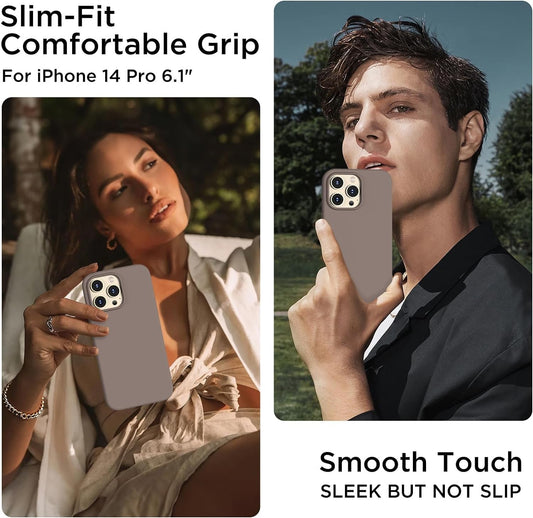COFFKER Designed for Iphone 14 Pro Case, Liquid Silicone Case [2X Screen Protectors], Shockproof Protective Slim Thin Phone Case with Anti-Scratch Soft Microfiber Lining, 6.1 Inch, Coffee Brown