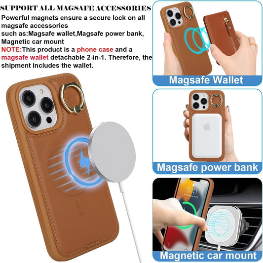 DEYHU Iphone 14 Pro Case with Card Holder, Iphone 14 Pro Phone Case Wallet for Women Magsafe Compatible Wallet Detachable 2-In-1 for Men-Brown