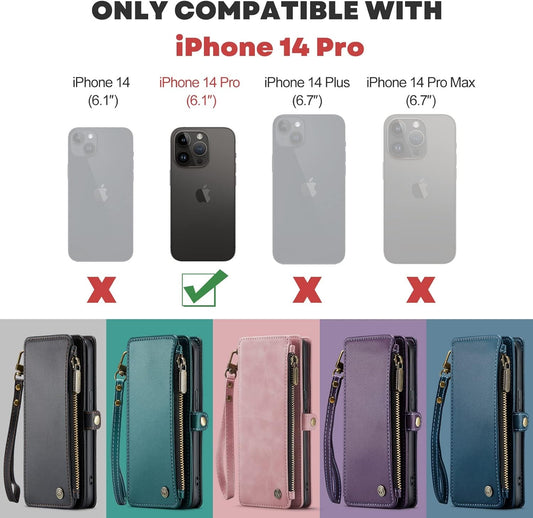 Defencase for Iphone 14 Pro Case, RFID Blocking for Iphone 14 Pro Wallet Case for Women Men with Credit Card Holder Zipper Pocket PU Leather Protective Cover for Apple Iphone 14 Pro Phone Case, Black