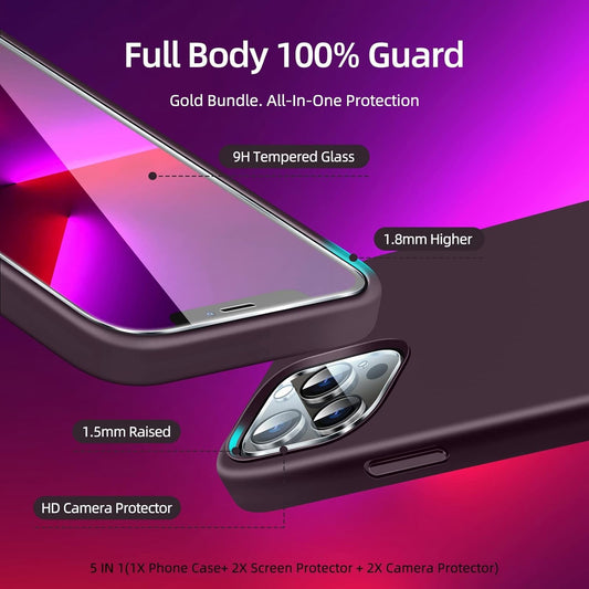 Dssairo [5 in 1 for Iphone 13 Pro Case, with 2 Pack Screen Protector + 2 Pack Camera Lens Protector, Liquid Silicone Slim Shockproof Protective Phone Case [Microfiber Lining] 6.1 (Dark Purple)…………