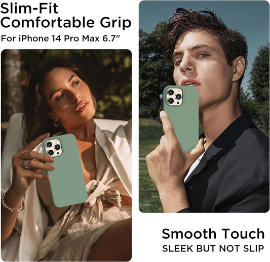 COFFKER Designed for Iphone 14 Pro Max Case, Liquid Silicone Case [2X Screen Protectors], Shockproof Slim Thin Protective Phone Case with Soft Anti-Scratch Microfiber Lining, 6.7 Inch, Calke Green