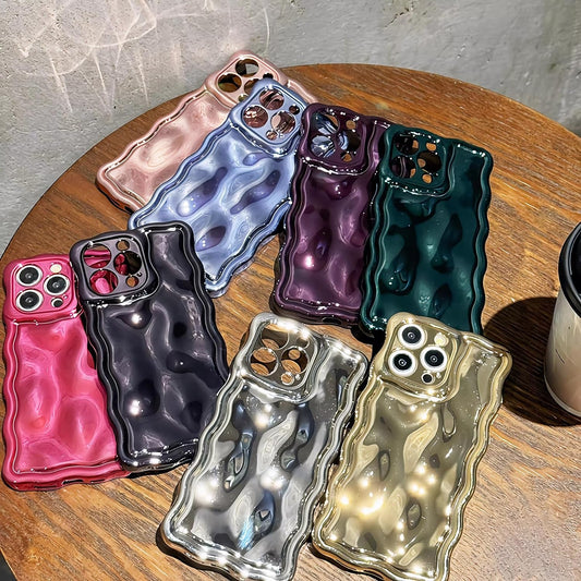 Ekoneda for Iphone 14 Pro Max Case Curly Wavy Cute Square Edge, Aesthetic Silicone Protective Cover for Women Girl Slim Glitter Bling Water Ripple Plating Shockproof Soft Phone Cases, Shiny Hot Pink