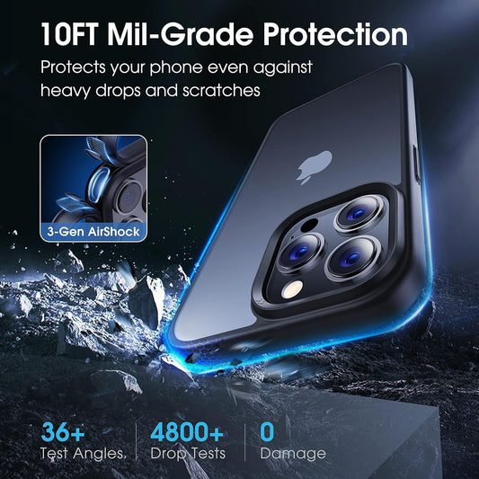 CASEKOO for Iphone 14 Pro Case Matte Shockproof, [Never Yellow] [10FT Mil-Grade Drop Protection] Translucent Slim Cover Women Men 14 Pro Iphone Case, Frosted Black
