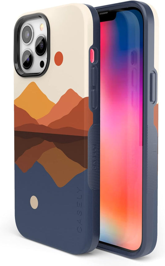 Casely Iphone 14 Pro Case | Opposites Attract | Day & Night Colorblock Mountain | Compatible with Magsafe