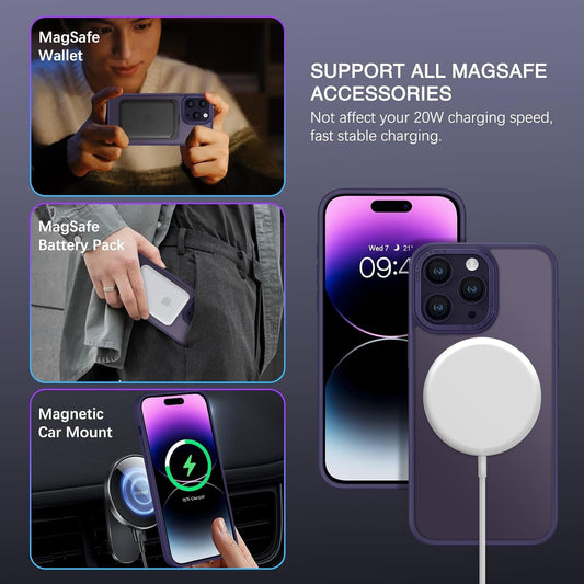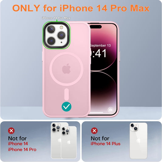 CHEZEAL Magnetic for Iphone 14 Pro Max Case [Compatible with Magsafe & Military-Grade Protection] Slim Protective Translucent Matte Iphone 14 Pro Max Phone Case 6.7 Inch, Pink