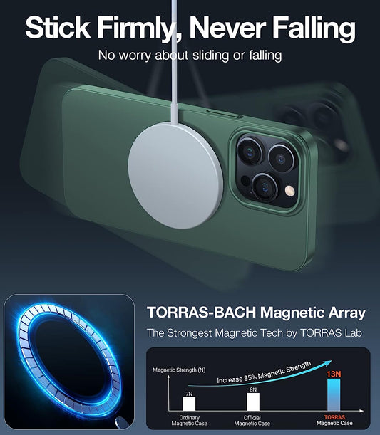 TORRAS Magnetic Slim Fit Designed for Iphone 14 Pro Case, [Ultra Thin as No Case] [Bare Iphone Grip][Compatible with Magsafe] Anti-Scratch Plastic Cover Phone Case for Iphone 14 Pro, Alpine Green